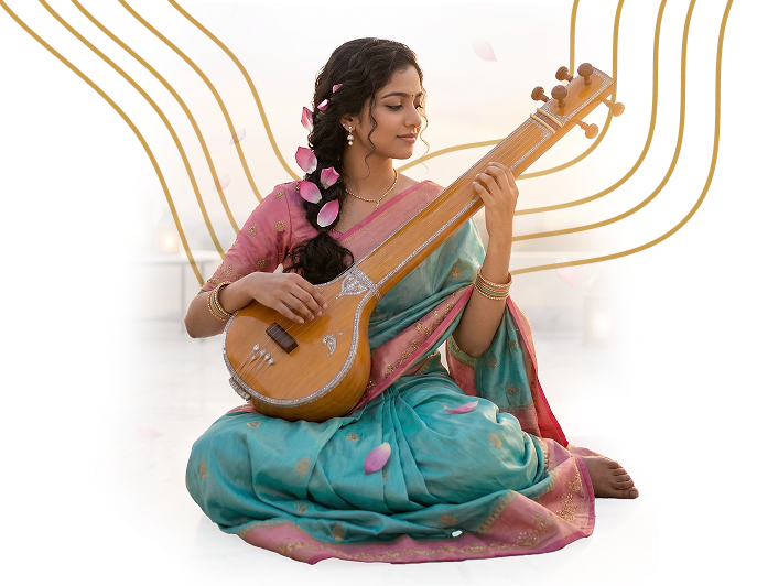 Our Music Program is designed to awaken the purest expression of the soul through sound. Blending Classical Indian Music with global contemporary techniques, the curriculum helps students understand the spiritual power of rhythm, melody, and vibration. Under the guidance of experienced maestros, learners explore vocal mastery, instrumental training, and the science of Nada Yoga discovering how music can heal, transform, and elevate consciousness.